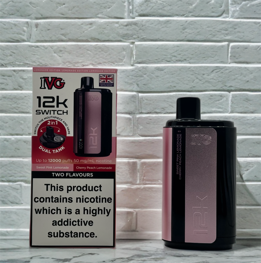 Купить одноразовые электронные сигареты Ivg 12000 Switch на 12000 затяжек с двойными вкусами с подзарядкой Type-C и индикаторами оставшегося заряда и оставшейся жидкости с доставкой или самовывозом из вейп шопов в Москве и доставкой по России.