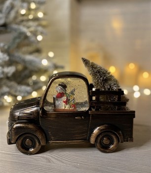 Фонарь-светильник Машинка со снеговиком и ёлкой