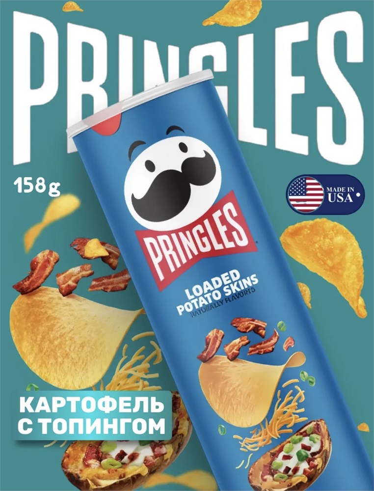 Картофельные чипсы Pringles Loaded Potato Skins / Принглс Картофель с топингом 158гр