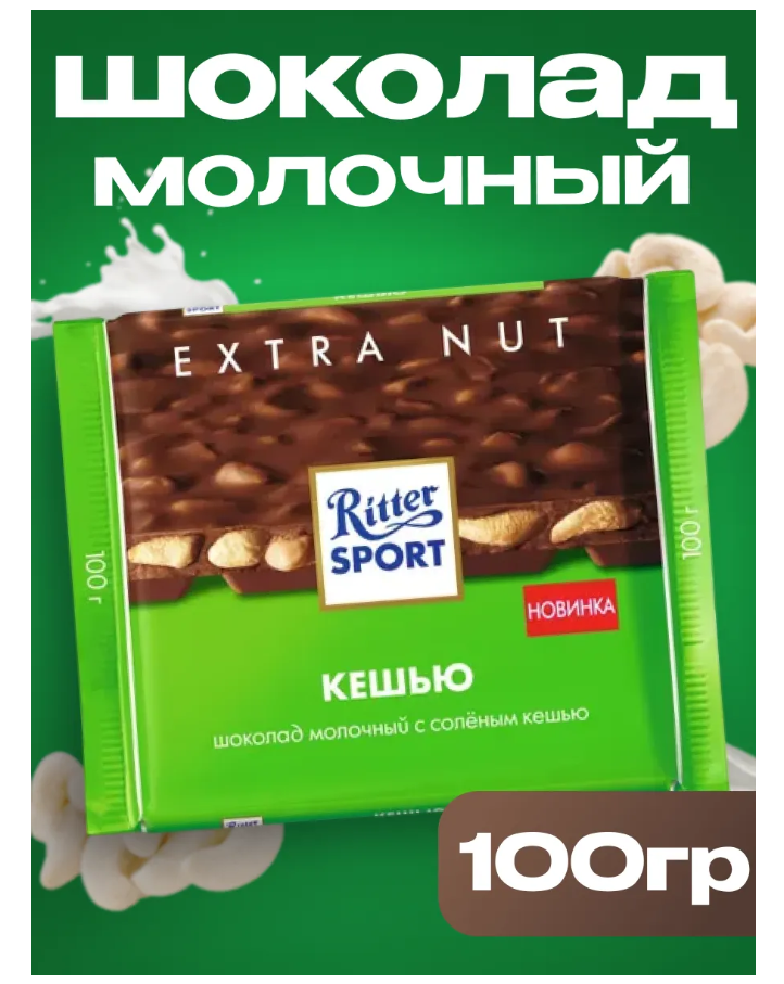 Молочный шоколад Риттер спорт с кешью, 100 г