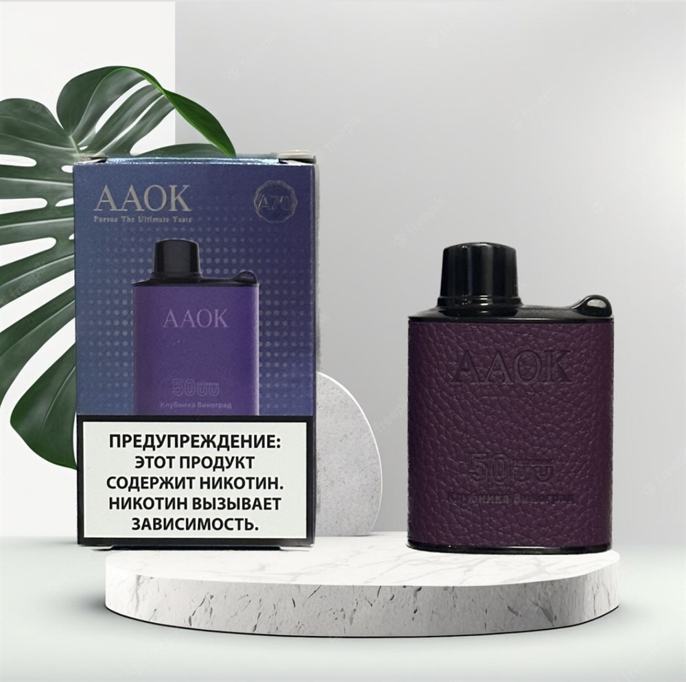Купить одноразовые электронные сигареты AAOK модель A70 на 5000 затяжек в кожаном маленьком практичном корпусе с подзарядкой Type-C с доставкой или самовывозом из вейп шопов в Москве и доставкой по России.