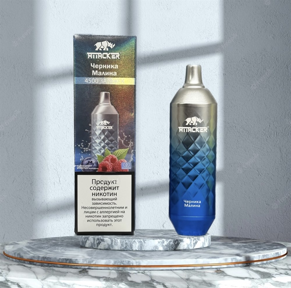 Купить одноразовые электронные сигареты Attacker P-06 на 4500 затяжек с подзарядкой Type-C в интересном рефлёном корпусе с доставкой или самовывозом из вейп шопов в Москве и доставкой по России.
