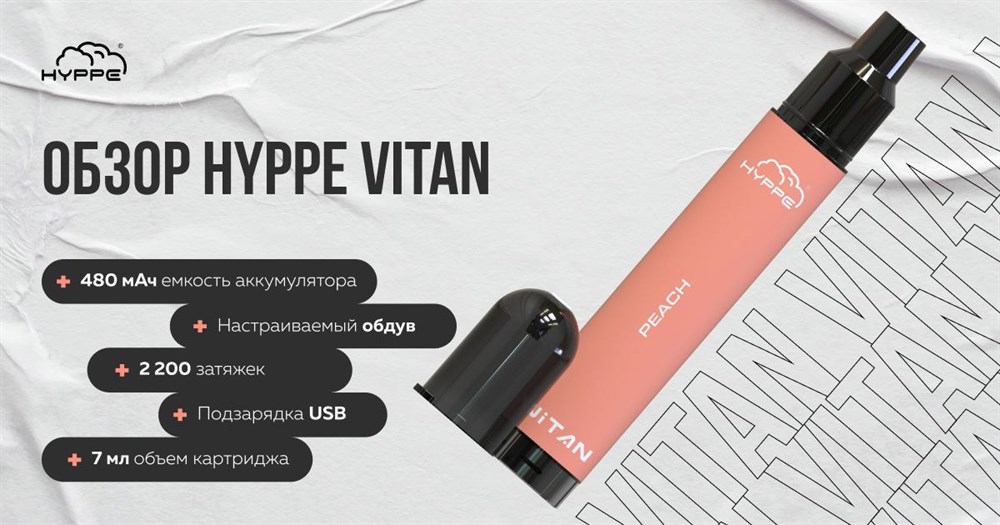 Купить одноразовые электронные сигареты Hyppe Vitan 2200 на 2200 затяжек с доставкой или самовывозом из вейп шопов в Москве и доставкой по России.