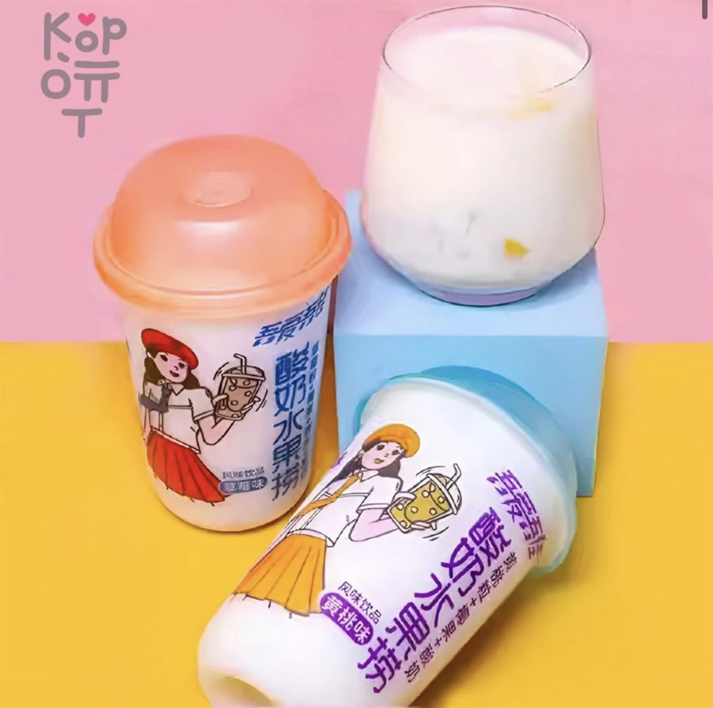 Йогуртовый напиток Hunan Little Jiajia с кусочками фруктов, кокоса и вкусом Манго и Ананаса, 450мл.