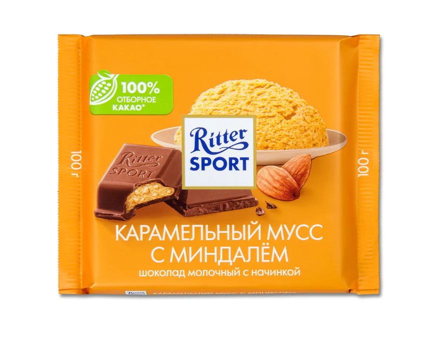 Молочный шоколад Ritter Sport «Карамельный мусс с миндалем»