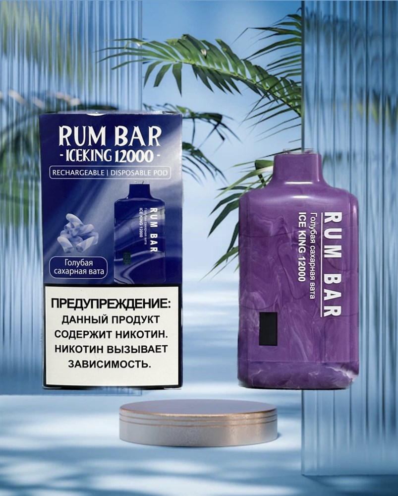 Купить одноразовые электронные сигареты RUM Bar Ice King на 12000 затяжек с подзарядкой Type-C, регулировкой тяги и индикаторами оставшегося заряда и оставшейся жидкости с доставкой или самовывозом из вейп шопов в Москве и доставкой по России.