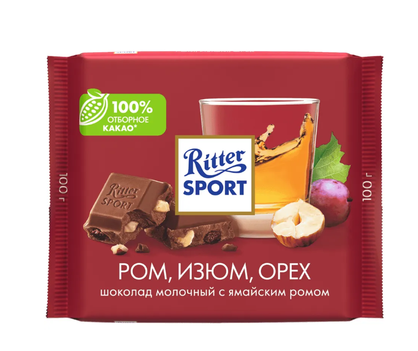 Шоколад Ritter Sport ром, изюм, орех 100 г