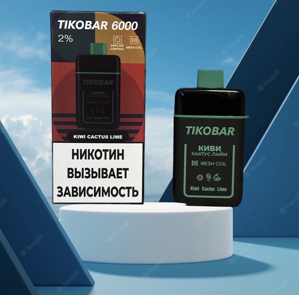 Купить одноразовые электронные сигареты TIKOBAR 6000 на 6000 затяжек с регулировкой тяги (маленькое колёсико внизу), сетчатым испарителем и подзарядкой Type-C с доставкой или самовывозом из вейп шопов в Москве и доставкой по России.