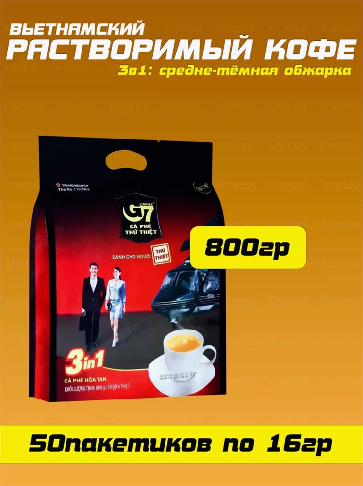 Вьетнамский кофе растворимый G7 в пакетах, 3 в 1 Original 50 пакетиков по 16 грамм